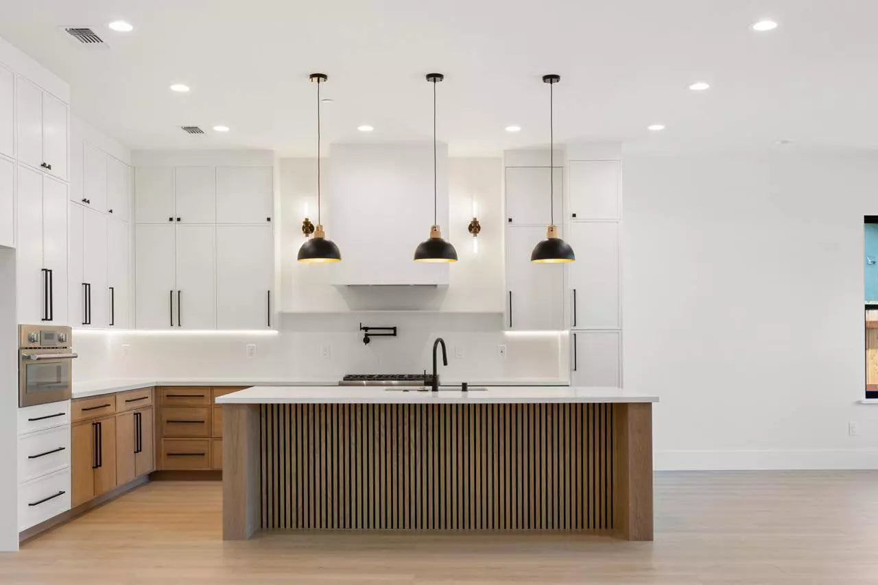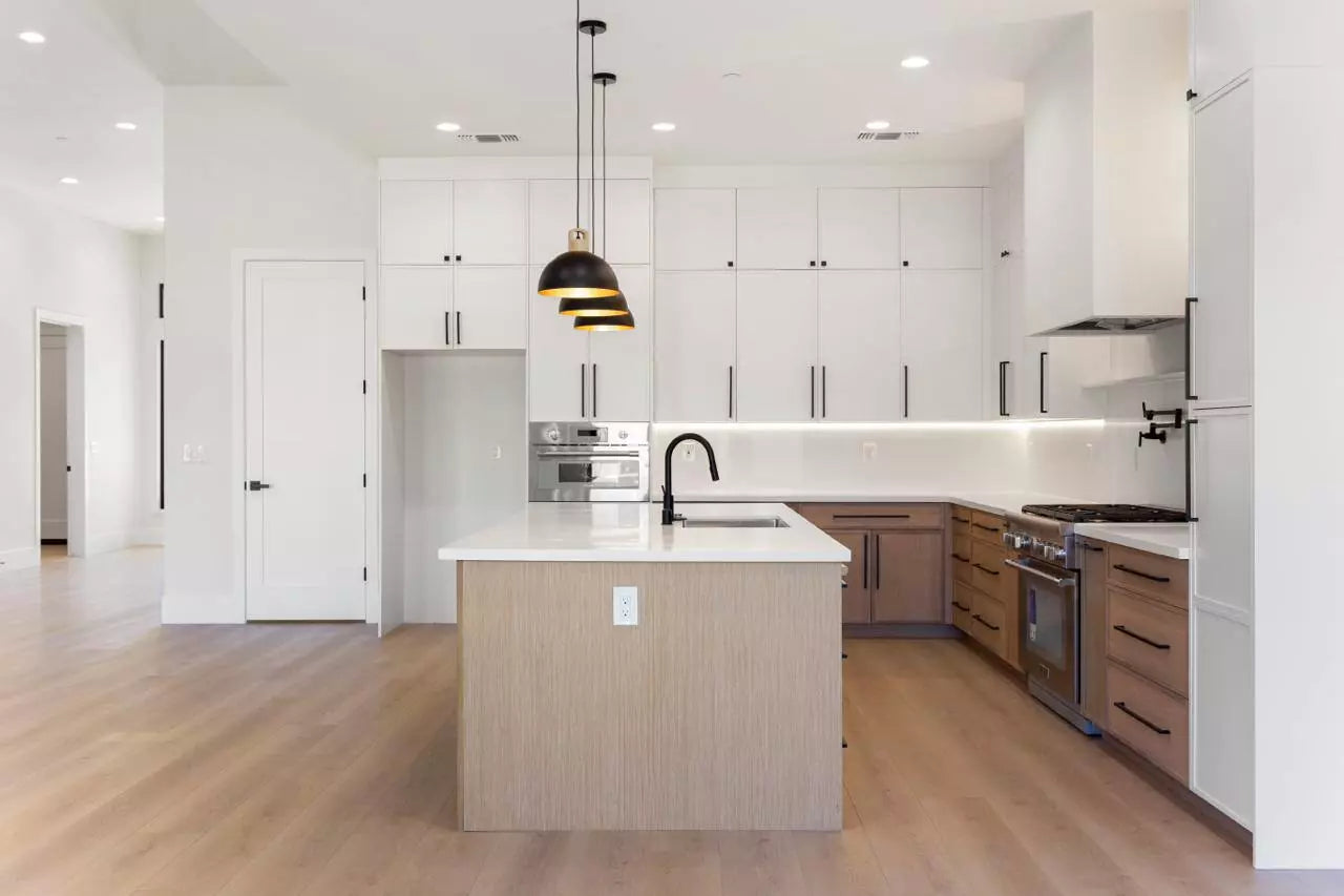 - Two-tone cabinetry for a modern and balanced look.
